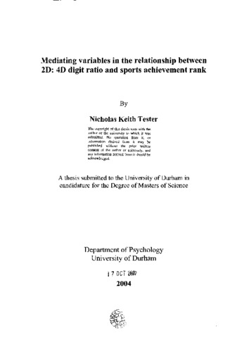 Mediating variables in the relationship between 2D: 4D digit ratio and sports achievement rank