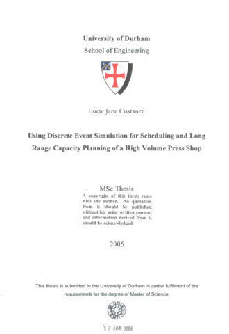 The thesis expresses the essential requirement for and the use of Discrete Event Simulation (DES) in a high volume press shop. The press shop produces blanks and panels for the body shop, which manufactures three car models. DES is used to combat the battle between shop efficiency and low inventory. The process used to choose the most appropriate software package is described and then current situation in the press shop is discussed. The procedures involved in model creation follow set model construction guidelines. There are several assumptions made, which together with the constraints of the system, provide the limitations of the inputs facing the system. There is a trade off between model complexity and accuracy, so the setting of the constraints and assumptions often provided difficult decisions. Validation of the model is very important, so this was a lengthy process, involving using a series of dummy buffers to check inputs such as cycle times and batch quantities. The validated model is used to monitor the methods used to reduce inventory on the shop floor over a period of eight weeks and then used for 'What If? Scenarios, to ascertain the systems capacity and inventory levels under different conditions. The scenarios include using volumes that are 100% higher on some models than the current situation and 20% less than currently. The findings are examined and proposals made for the introduction of the proposed volumes where possible. Findings of the scenarios highlight bottlenecks in the shop and areas for improvement. Using the model, the schedules can be changed quickly and easily to try and eliminate the bottlenecks and improve capacity. Conclusions discuss the problems encountered during the modelling process as well as the benefits. The integration of DES into the current scheduling processes in the shop poses no problems and the model will be used as an aid for capacity planning in the future.