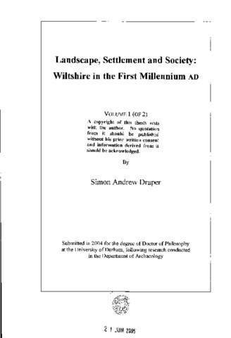 Landscape, settlement and society: Wiltshire in the first millennium AD
