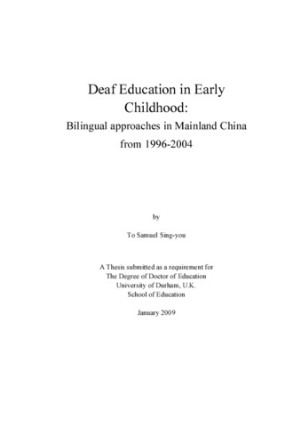 Deaf Education in Early Childhood: Bilingual approaches in Mainland China from 1996-2004
