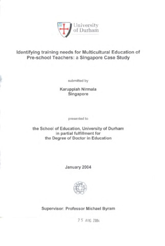 Identifying training needs for multicultural education of pre-school teachers:: a Singapore case study