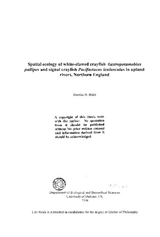 Spatial ecology of white-clawed crayfish Austropotamobius pallipes and signal crayfish Pacifastacus leniusculus in upland rivers, Northern England