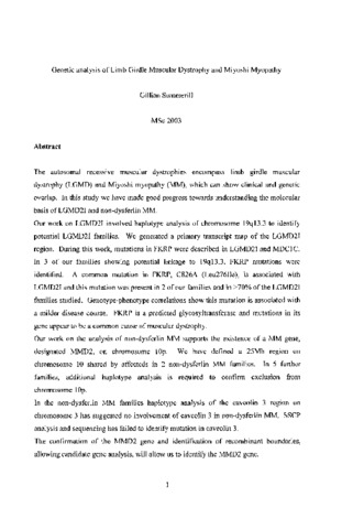 The autosomal recessive muscular dystrophies encompass limb girdle muscular dystrophy (LGMD) and Miyoshi myopathy (MM), which can show clinical and genetic overlap. In this study we have made good progress towards understanding the molecular basis of LGMD2I and non-dysferlin MM. Our work on LGMD2I involved haplotype analysis of chromosome 19ql3.3 to identify potential LGMD2I families. We generated a primary transcript map of the LGMD2I region. During this work, mutations in FKRP were described in LGMD2I and MDCIC. In 3 of our families showing potential linkage to 19ql3.3, FKRP mutations were identified. A common mutation in FKRP, C826A (Leu276Ile), is associated with LGMD2I and this mutation was present in 2 of our families and in >70% of the LGMD2I families studied. Genotype-phenotype correlations show this mutation is associated with a milder disease course. FKRP is a predicted glycosyhransferase and mutations in its gene appear to be a common cause of muscular dystrophy. Our work on the analysis of non-dysferlin MM supports the existence of a MM gene, designated MMD2, on chromosome lOp. We have defined a 25Mb region on chromosome 10 shared by affecteds in 2 non-dysferlin MM families. In 5 further families, additional haplotype analysis is required to confirm exclusion from chromosome l0p.In the non-dysferlin MM families haplotype analysis of the caveolin 3 region on chromosome 3 has suggested no involvement of caveolin 3 in non-dysferlin MM. SSCP analysis and sequencing has failed to identify mutation in caveolin 3. The confirmation of the MMD2 gene and identification of recombinant boundaries, allowing candidate gene analysis, will allow us to identify the MMD2 gene.