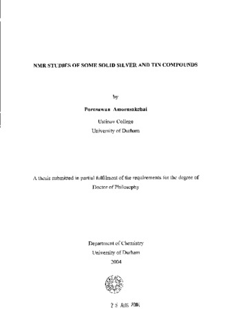A solid-state NMR study of a range of tin- and silver-containing compounds has been carried out in order to obtain information on the chemical shifts, coupling constants and relaxation times. The results are discussed in relation to the crystal structures, where known, and some crystallographic information obtained in cases with no previously-known structures. For tin-containing compounds, solid-state (^119)Sn and (^31)P NMR comprise the majority of this work. Nevertheless, (^13)C NMR studies have been also carried out to assist the structure determination. Six Sn(II) compounds have been examined, including three which also contain phosphorus. Spinning sideband analysis has been achieved for (^119)Sn (in some cases (^31)P), giving information on the shielding tensors. Satellite peaks observed on the (^119)Sn NMR spectra of SnHPO(_3) and SnHP0(_4) reveal that the spectra contain information about indirect Sn(_2)Sn coupling. Since surprisingly large values of 2600 ±200 Hz and 4150 ± 200 Hz are found for SnHPO(_3)and SnHPO(_4), respectively, the calculated relative intensities of the satellites and the results of a single Hahn echo experiment have been discussed in detail. The relatively isolated ((^1)H,(^31)P) spin pair in solid SnHPO(_3) have been extensively investigated in this work, though the systems are rather complicated. The (^1)H and (^31)P spectra display an intensity distribution of the spinning sidebands, which is the characteristic of an interplay of shielding, dipolar and indirect coupling tensors dominated, by the strong dipolar interactions. A single Hahn echo experiment was employed to reveal indirect spin-spin coupling ((^1)JPH). Strong oscillatory polarization transfer by dipolar interaction occurs during short contact times on moderately fast magic-angle spinning and the P,H distances were extracted (including for SnHPO(_4)).Rather complicated (^1)H NMR spectra under (^31)P continuous-wave decoupling arises from a second-order recoupling of the heteronuclear dipolar-coupling tensor and the shielding tensor of ^'P, leading to line-splittings and broadenings in the (^1)H spectra. Additionally, measurement of (^1)H and (^31)P relaxation times has been undertaken, producing results which were expected to follow the behaviour characteristic of an isolated two-spin system, but anomalies were observed. Various nuclei, such as (^13)C, (^15)N, (^31)P and (^109)Ag, in silver-containing compounds have been studied, and provide information on indirect spin-spin interactions, (^1)J((^109)Ag (^14)N) and (^1)J((^109)Ag(^15)N). The (^109)Ag NMR spectra for [Ag(NH(_3)(_2))(_2)X where X = SO(_4), SeO(_4), NO(_3)show spinning sideband manifolds, which are typical for systems with moderately large shielding anisotropy. Other silver compounds namely [Ag(R)(_2)]NO(_3) where R = pyridine, collidine, 2-picoline, quinoline and AgY where Y = HPO(_4) and PO(_4), have been investigated to give as much complementary information about the chemical shifts as possible.