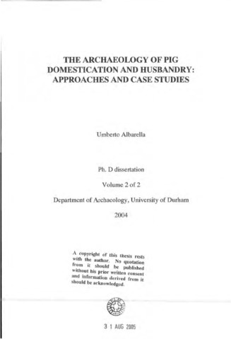 The main aim of this thesis is to present the potential of an integrated analysis for the study of past relations between humans and pigs. In particular, the advent of pig domestication and patterns of early husbandry in southern Europe will be discussed on the basis of a multidisciplinary approach. The core method is represented by abiometrical analysis of pig teeth and bones from archaeological as well as modem collections. The study of recent material provides the opportunity to detect variation in wild boar size and shape across the whole range of distribution of the species. An archaeological baseline for domestic pigs is obtained through the study of a large Neolithic assemblage from England. With the adoption of a size index scaling technique this is then used as a 'standard' reference for the analysis of southern European material. In addition to this biometrical analysis, a historical approach to the study of pig husbandry in medieval England and ethnoarchaeological work in Sardinia and Corsica provide further opportunities to build up an interpretative framework for the archaeological evidence. A number of case studies from rehistoric and historic Portugal and prehistoric Italy are then resented. In Portugal abundant data collected from late prehistoric and historic assemblages are compared with Mesolithic and Neolithic evidence and provide the opportunity to study variations in patterns of pig hunting and husbandry through a long chronologicalsequence. The evidence for this country indicates that wild boars increased in size after the Mesolithic whereas no improvement in domestic pigs can be detected until the Middle Ages, which means that practices of free-range husbandry were probably adopted for the whole of the prehistoric and early historic periods. In Italy an even larger number of sites is used to illuminate the evolution of pig exploitation in that particular country. Like in Portugal a pattern of size increase in wild boars emerges after the Mesolithic, but in Italy it is also possible to detect size decrease in domestic pigs, with intensification in pig husbandry occurring probably sometime in the late Neolithic. The similarity in size between Mesolithic and Neolithic pigs confirms the suggestion brought about by genetic analysis that pigs were domesticated locally. The use of a diversity of approaches and the large chronological and geographic scale of this analysis provides us with a unique insight into the great variety of interactions that occurred between humans and pigs and the general importance of these animals in human history.