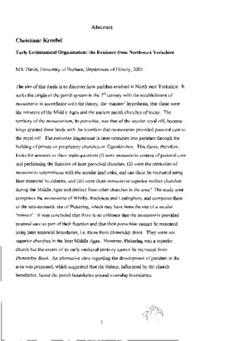 Early ecclesiastical organization:: the evidence from North-east Yorkshire