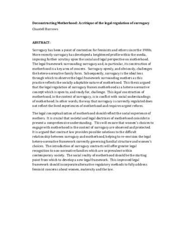 Deconstructing Motherhood: A critique of the legal regulation of surrogacy