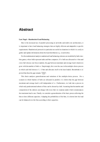 | Uncontrolled Keywords | Load balancing, randomised algorithms, balls-into-bins games |