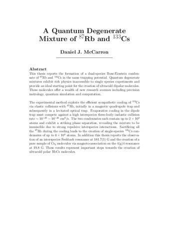 | Uncontrolled Keywords | Bose-Einstein Condensation, Feshbach Molecules, Ultracold Mixtures, Ultracold Polar Molecules, Magnetic Trapping, Optical Trapping, Sympathetic Cooling, Adiabatic Rapid Passage, Immiscibility, Tunable Interactions. |