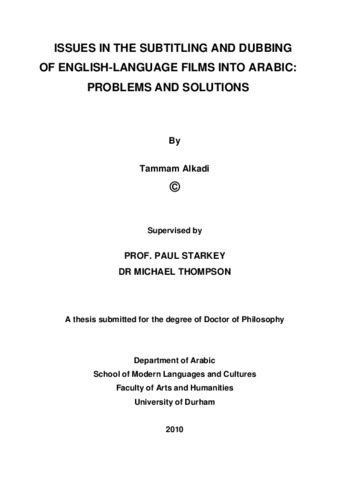 ISSUES IN THE SUBTITLING AND DUBBING OF ENGLISH-LANGUAGE FILMS INTO ARABIC: PROBLEMS AND SOLUTIONS