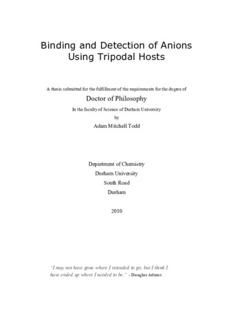 | Uncontrolled Keywords | Anion Binding, Tripods |