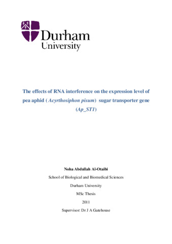 The effects of RNA interference on the expression level of pea aphid ( Acyrthosiphon pisum) sugar transporter gene (Ap_ST1)
