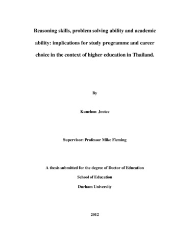 Reasoning skills, problem solving ability and academic ability: implications for study programme and career choice in the context of higher education in Thailand.