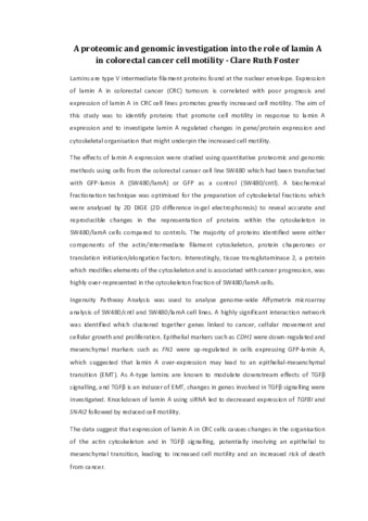 A proteomic and genomic investigation into the role of lamin A in colorectal cancer cell motility