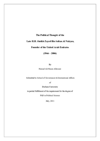 The Political Thought of the Late H.H. Sheikh Zayed Bin Sultan Al Nahyan, Founder of the United Arab Emirates (1966 - 2004)