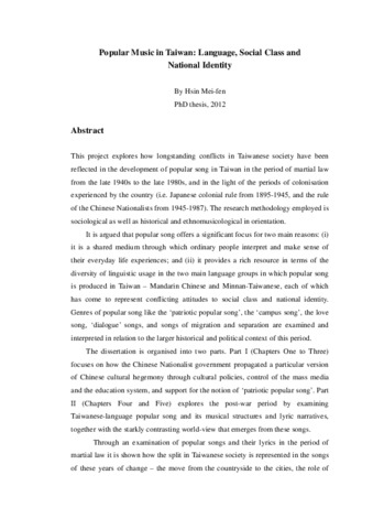 Popular Music in Taiwan: Language, Social Class and National Identity