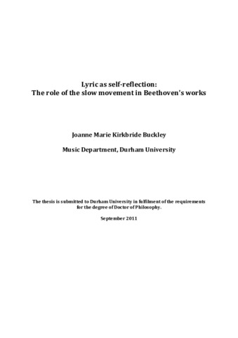 The slow movement has often been overlooked by writers on the Classical style, who typically gloss over its formal and expressive intricacies in favour of sonata form analyses of first movements and finales. But closer study reveals that the slow movement may be due greater prominence – that it may even be ‘richer than the entire rest of the [multi-movement] form’. The present study seeks to redress the balance and to correct the perception that the slow movement is simply a ‘simplification’ or ‘deformation’ of sonata form types. Lyrical forms, I argue, present their own unique set of characteristics, which demand to be judged on their own terms. Tracing the development of the slow movement through the Classical style also reveals the growing importance of the slow movement to nineteenth century composers, and suggests that Beethoven’s works represent a turning point in the characterisation of the genre. Detailed comparative analyses of Beethoven’s slow movements, alongside those by Haydn, Mozart and C.P.E. Bach, present a compelling picture of the slow movement as centrepiece, rather than parenthesis. As Dahlhaus suggests, this creates a reversal of priorities and causes us to re-evaluate our perception of Classical form: ‘The lyricism that is confined to an enclave in the classical sonata became the predominant structural principle, causing a crisis for the idea of thematic process.’