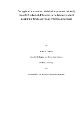 The application of modern statistical approaches to identify consistent individual differences in the behaviour of wild postpartum female grey seals (Halichoerus grypus)