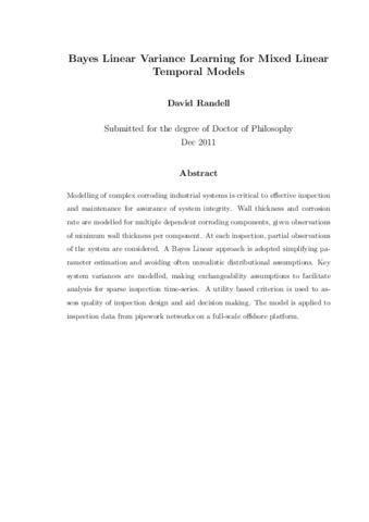 | Uncontrolled Keywords | Bayes Linear, Inspection, Corrosion, Exchangeability, Dynamic Linear Model, DLM, Variance learning |