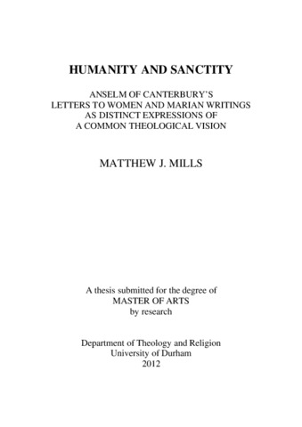Humanity and Sanctity: Anselm of Canterbury’s Letters to Women and Marian Writings as distinct expressions of a common theological vision
