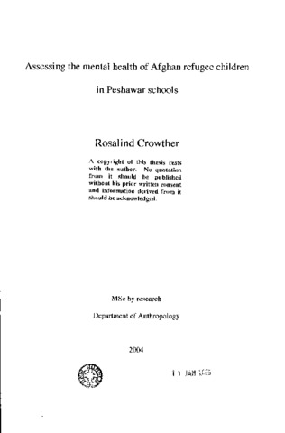 Assessing the mental health of Afghan refugee childrenin Peshawar schools