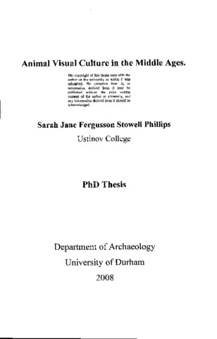 This PhD thesis presents an investigation of animal visual culture in the Middle Ages. The term animal visual culture is most simply defined (and intended to be understood as), visual material culture which demonstrates animal/creature-related images or material which becomes circulated in animal/creature forms. The thesis uses an archaeological approach to investigate visualisations of animals (as opposed to a purely zoo-archaeological, historical or art historical approach). Three main types of visual material culture were researched for the representation of animals: stained and painted glass, misericord carvings and portable material culture. The representation of animals in each data source was investigated to explore the extent to which species, chronological, and either geographical or artefact patterns could be established within a 500 year period of the Middle Ages. A number of species, chronological, and either geographical or artefact patterns could be established.It was concluded that the patterns of representations were linked to the ideas various organisations and individuals had about animals or wanted others to have about animals. Animal visual culture is a manifestation of medieval life and faith. It challenges our modern day understanding of the complex medieval issues influencing the creation and intended function of animal images in society.
