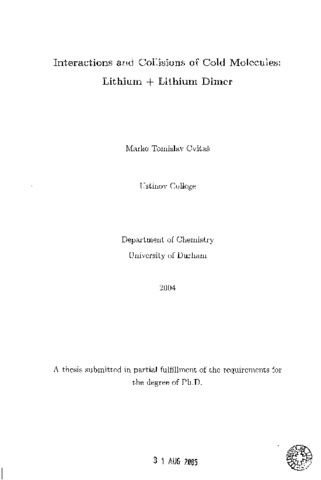 There is at present great interest in the properties of ultracold molecules. Molecules are created in traps in excited rovibrational states and any vibrational relaxation results in the trap loss. This thesis provides a theoretical study of interactions and collisions in the spin-polarized lithium -b lithium dimer system at ultralow energies. Potential energy surface of the electronic quartet ground state of lithium trimer is generated ab initio using the CCSD(T) method and represented by an IMLS/Shepard fit. Long-range nonadditive interactions are modelled using a symmetric global form with coefficients taken from a fit to the atom-molecule dispersion coefficients. The surface allows barrierless atom-exchange reactions. It has a global minimum of ≈ 4000 cm(^-1) at equilateral geometries with r(_e) = 3.1 Å. The nonadditive interactions are very strong near equilibrium. They increase the well depth by a factor of 4 and reduce the interatomic distance by ≈ 1 Å. Another surface of À symmetry in C(_s) meets the ground state surface at linear geometries at short range. Part of the seam, near D(_ooh) geometries, is in an energetically accessible region for cold collisions. Inside the seam, the lowest À surface correlates with (^4)II rather than (^4)Σ state. Inelastic and reactive collisions are investigated using a quantum mechanical coupled channel method in hyperspherical coordinates. Bosonic and fermionic systems in the spin-stretched states are considered. The inelastic rate coefficients from the rovibrationally excited states of dimer at ultralow collision energies are large, often above 10-(^-10) cm(^3)s(^-1) The elastic cross sections are ≈ 3 orders of magnitude lower at 1 nK. Atom-molecule mixtures, at the densities found in Bose-Einstein condensates of alkali metal atoms that were recently produced, would last only a fraction of a second. Classical Langevin model describes semi-quantitatively the energy dependence of inelastic cross sections above ≈ 50 mK. No systematic differences between the bosonic and fermionic systems were found. Sensitivity of the results on potential was investigated. Reactions in isotopic mixtures of lithium may be exothermic even from the molecular ground state. The reactive rate coefficients are 1 - 2 orders of magnitude smaller than those in systems involving an initially vibrationally excited dimer.