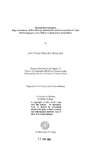 Beyond the Foreigner: representations of non-roman individuals and communities in latin historiography, from Sallust to Ammianus Marcellinus