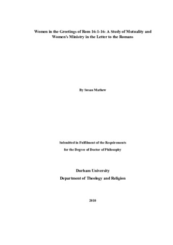 Women in the Greetings of Rom 16:1-16: A Study of Mutuality and Women's Ministry in the Letter to the Romans