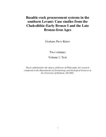 Basaltic-rock procurement systems in the southern levant: case studies from the chalcolithic-early bronze I and the late bronze-iron ages