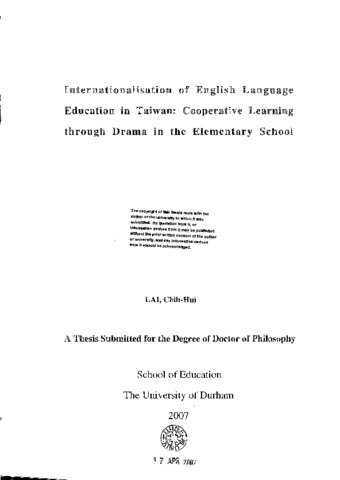 Internationalisation of English language education in Taiwan: cooperative learning through drama in the elementary school