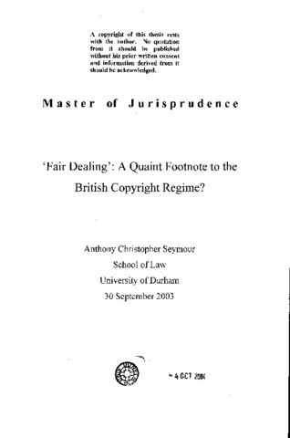 The following thesis explores the vicissitudes of the British copyright law defence of fair dealing from its birth as the common law defence of fair use through its subsequent development under the 1911, 1956 and 1988 Copyright Acts to its present situation in light of the most recent case of Ashdown v The Daily Telegraph [2002] as well as the changes proposed by the British Patent Office in its endeavours to implement the European Information Society Directive (29/2001/EC). It is submitted that the general development of this provision has been one of gradual decline. On a statutory level the defence has been continually restricted to the point where if the proposals of the Patent Office are accepted, it will be barely be able to operate as a defence designed to balance the interests of copyright owners against copyright users. As far as judicial pronouncements are concerned, up until 1990 it is submitted that the courts, in general, failed to demonstrate any real dynamism when interpreting the fair dealing provisions. It has only been in the last 10 years that the true potential of the defence, in maintaining this copyright balance, has been explored, although this has only tended to manifest when the courts have considered the position of media litigants. This in conjunction with the latest proposals for reform from the Patent Office, in light of the emergence of the digital age, could arguably sound the death knell for fair dealing. As governments of the two main trading blocks of Europe and the US continue to adopt an increasingly rights-maximising approach in favour of copyright owners it is submitted that fair dealing may well become a footnote to the British copyright regime.
