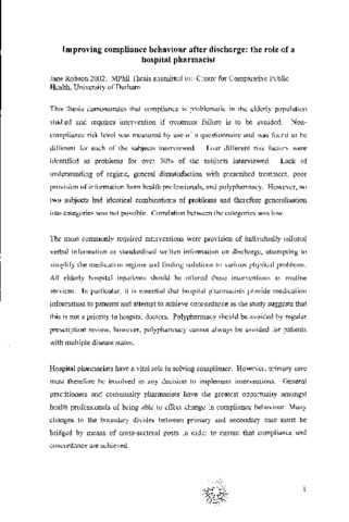 Improving compliance behaviour after discharge: the role of a hospital pharmacist