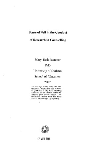 Sense of self in the conduct of research in counselling