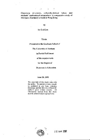 Classroom structures, cultrally-derived values and students' motivational orientations: a comparative study of two types of primary schools in Hong Kong