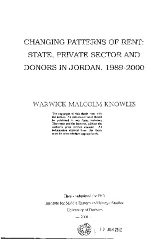 Changing patterns of rent: state, private sector and donors in Jordan, 1989-2000