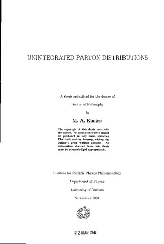 We develop the theory of parton distributions f(_a)(π, k(^t2), μ(^2), unintegrated with respect to transverse momentum k(_t), from a phenomenological standpoint. In particular, we demonstrate a convenient approximation in which the unintegrated functions are obtained by explicitly performing the last step of parton evolution in perturbative QCD, with single-scale functions a(π, Q(^2) as input. Results are presented in the context of DGLAP and combined BFKL-DGLAP evolution, but with angular ordering imposed in the last step of the evolution. We illustrate the application of these unintegrated distributions to predict cross sections for physical processes at lepton-hadron and hadron-hadron colliders. The use of partons with incoming transverse momentum, based on k(_t)-factorisation, is intended to replace phenomenological "smearing" in the perturbative region k(_t) > k(_o) (k(_o) ≈ 1 GeV), and enables the full kinematics of a process to be included even at leading order. We apply our framework to deep inelastic scattering and the fitting of F(_2)(π, Q(^2), to the transverse momentum spectra of prompt photons in hadroproduction and in photoproduction, and to the topical problem of bb production at HERA. Finally, we address the issue of parton-parton recombination (shadowing) at very low values of π, building on recent work by Kovchegov and others to make predictions for the likely magnitude of shadowing effects at the LHC.
