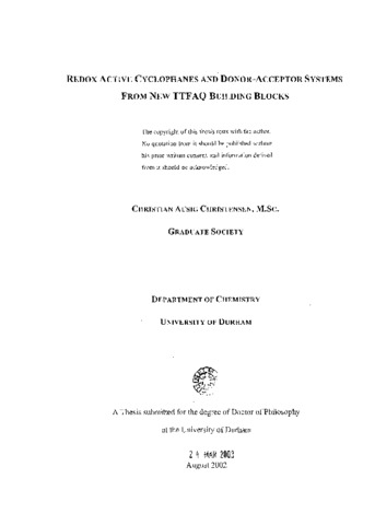The saddle-shaped electron donor 9,10-his(l,3-dithiol-2-ylidene)-9,10-dihydroanthracene (TTFAQ) 49, which oxidises in a single, quasi-reversible, two-electron wave, accompanied by a dramatic conformational change, has been incorporated into donor-acceptor system 130. However, no significant charge-transfer interaction was observed. Pyrrolo-annelated TTFAQ derivatives 173 and 174 were synthesised, and donor-acceptor dyads, which showed intramolecular charge-transfer interactions, derived. TTFAQ cyclophanes 206 and 207 were synthesised in good yields, paving the way for the incorporation of more elaborate functionalities into TTFAQ cyclophanes, as exemplified by the synthesis of a TTFAQ- phenanthroline cyclophane with potential use as an electroactive sensor. A new methodology for the synthesis of TTFAQ derivatives has been developed, allowing the synthesis of cyanoethyl protected TTFAQ thiolate derivatives. These derivatives afforded several TTFAQ cyclophanes, of which the most interesting were the double-bridged cyclophanes 291 and 292. Due to the rigidity imposed by the two bridges, little conformational change is possible upon oxidation, which for the first time allowed us to study the elusive TTFAQ cation radical using cyclic voltammetry and spectroelectrochemistry, since 291 and 292 are oxidised in two, reversible, one-electron waves. The X-ray crystal structures of numerous new TTFAQ derivatives are also presented.