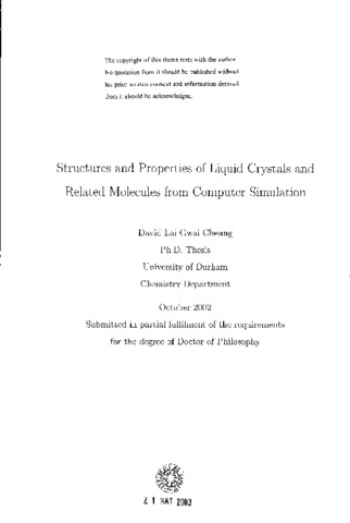 Computer simulations provide a powerful tool for the investigation of liquid crystalline phases. In this thesis the ability of simulations to calculate accurately the values of material parameters of liquid crystal molecules is investigated. An all-atom force field for liquid crystal molecules is developed using first principles density functional theory calculations on small organic molecules, which encompass key structural features of a range of common liquid crystalline molecules. Molecular dynamics simulations of these 'fragment' molecules are carried out in the liquid phase to test the force field parameters by determining densities and heats of vapourisation. Good agreement is found between experimental values and those calculated from simulation. Equilibrium molecular dynamics (MD) calculations were then performed for the nematogen n-4-(trans-n-pentylcyclohexyl)benzonitrile (PCH5). These simulations were performed using a fully atomistic model for several temperatures. The MD trajectories were used to obtain densities, order parameters, and values for the rotational viscosity coefficient 71. Several methods of obtaining 71 were tested based on the director angular velocity correlation function, the director mean-squared displacement, and statistical mechanics methods based on the rotational diffusion model. Good agreement is obtained between experimental values of 71 and those found from simulation. Further MD simulations of PCH5 using a 216 molecule system and the force field derived in this thesis were carried out to calculate the flexoelectric coefficients e(_s) and e(_b) for PCH5. The temperature dependence of and was examined along with the separate contributions to e(_s)and e(_b)arising bom the electrostatic and van der Waals interactions. The calculated values of e(_s)and e(_b) are consistent with available experimental data. The van der Waals and electrostatic contributions are found to be of similar magnitude and opposite sign.