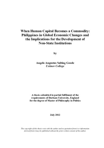 When Human Capital Becomes a Commodity: Philippines in Global Economic Changes and the Implications for the Development of Non-State Institutions