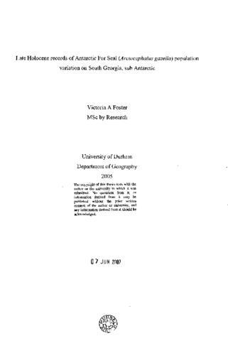 Late Holocene records of Antarctic fur Seal (Arctocephalus gazella) population variation on South Georgia, sub Antarctic