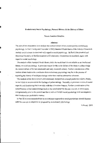The aim of this dissertation is to analyse two notions which inform contemporary evolutionary psychology. In Part I Tooby and Cosmides' (1992) Standard Model thesis of the history of twentieth century social science is examined with regard to social psychology. In Part II the practical and theoretical fecundity of the Environment of Evolutionary Adaptedness is examined, again with regard to social psychology. The analysis of the Standard Model thesis yields the result that it is not reliable as an intellectual history of social psychology. A principal reason for this is the failure of the thesis to acknowledge the instinct debate of the late nineteenth and early twentieth century. Further consideration of the instinct debate leads to the conclusion that evolutionary psychology may be in the process of repeating the history of social psychology rather than making substantive advances. The analysis of the Environment of Evolutionary Adaptedness concept yields two results. Firstly, in use it fails to accommodate the findings of palaeontology. Secondly, it promotes a view of mental capacity and functioning that is at odds with that of modern humans. Further consideration of the natural history of the human lineage leads to the conclusion that the past was not, in some sense, ontogenetically prior to the present and that it will not furnish social psychology with an adaptation that functions in a predictable manner. In Part III it is recommended that an evolutionary approach to social psychology should dispense with the concept of adaptation as proposed by evolutionary psychology.