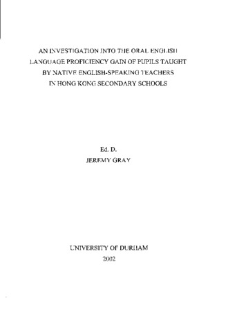 An investigation into the oral English language proficiency gain of pupils taught by native English-speaking teachers in Hong Kong secondary schools