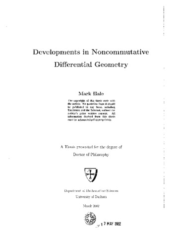Developments in noncommutative differential geometry