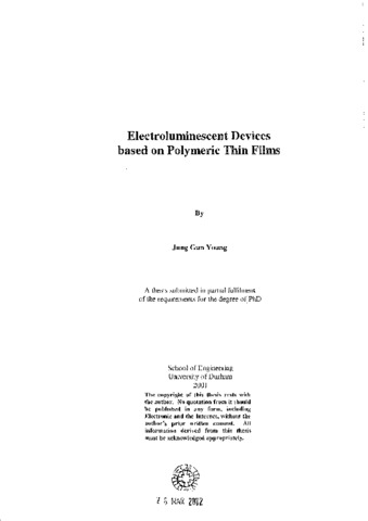 This thesis is concerned with the preparation of organic light-emitting diodes (LEDs) by using different thin film technologies: the Langmuir-Blodgett (LB) technique; spin-coating and thermal evaporation. The π-conjugated polymer, poly(2-methoxy-5-(5'-ethylhexyloxy)-p-phenylenevinylene) (MEH-PPV), was used as the emissive layer and was deposited onto patterned indium-tin oxide (ITO) glass using the LB technique or spin-coating. Y-type LB films of MEH-PPV were deposited at a surface pressure of 17 mN m(^-1) with a transfer ratio of 0.95 ± 0.03. Many efforts were made to improve the LB film device performance parameters, such as external quantum efficiency and operating lifetime, by inserting an electron transporting or insulating layer between the emissive layer and top cathode. Annealing the LB films was found to result in an improved operating lifetime. LEDs based on spun films possessed higher external quantum efficiencies than devices made from LB films. The more ordered LB films had a higher probability of intra- and intermolecular interactions and formed more excimer states within the structure. This led to a lower quantum efficiency compared to devices incorporating spun films. The operating lifetime of the LEDs was highly dependent on the morphology of the film surface. A smoother film surface is required for a longer device operating lifetime. A new electron transporting material, 2,5-bis[2-(4-tert-butylphenyl)-1,3,4-oxadiazol-5-yl]pyridine (PDPyDP), was deposited on top of the MEH-PPV spun film. Despite a high external quantum efficiency of 0.7 %, this device suffered from dark regions in the electroluminescence output resulting in degradation of the device. The dark area formation was attributed to delamination of the aluminium electrode from the PDPyDP layer, which was lessened by: (a) annealing the degraded devices; (b) evaporating a thicker aluminium layer at a high rate and (c) inserting a buffer layer (Alq(_3)) between the PDPyDP and the Al top electrode.