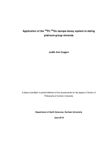 | Uncontrolled Keywords | Platinum; Osmium; Isotope; Dating; PGM; Geochronology; |