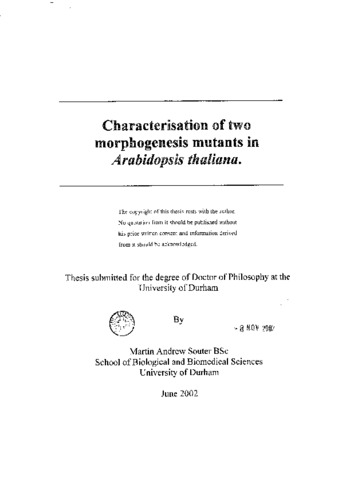 Characterisation of two morphogenesis mutants in Arabidopsis thaliana