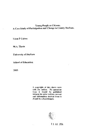 Young people as citizens: a case study of participation and change in county Durham.