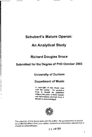 Schubert's mature operas: an analytical study