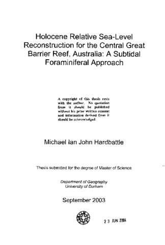 Holocene relative sea-level reconstruction for the central great barrier reef, Australia: a subtidal foraminiferal approach